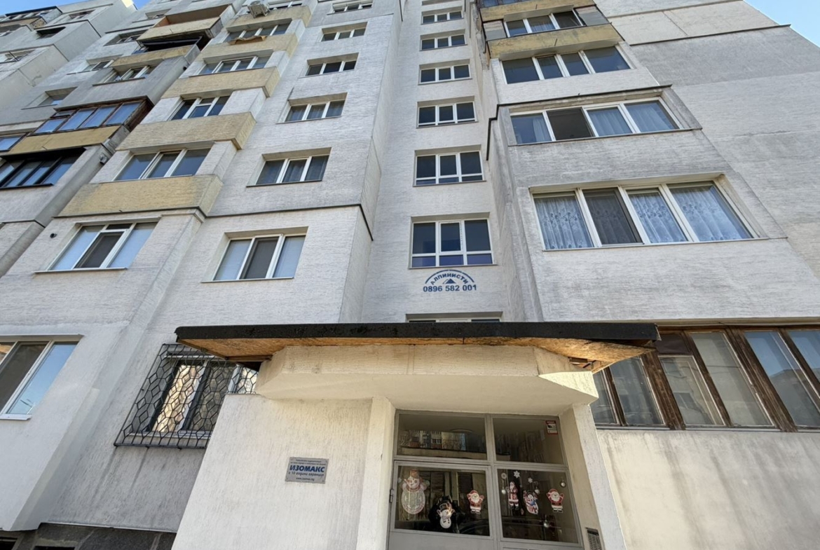 Сградата е санирана, а входът е в отлично състояние – ново боядисване, нова входна врата с чип-достъп и видеонаблюдение.