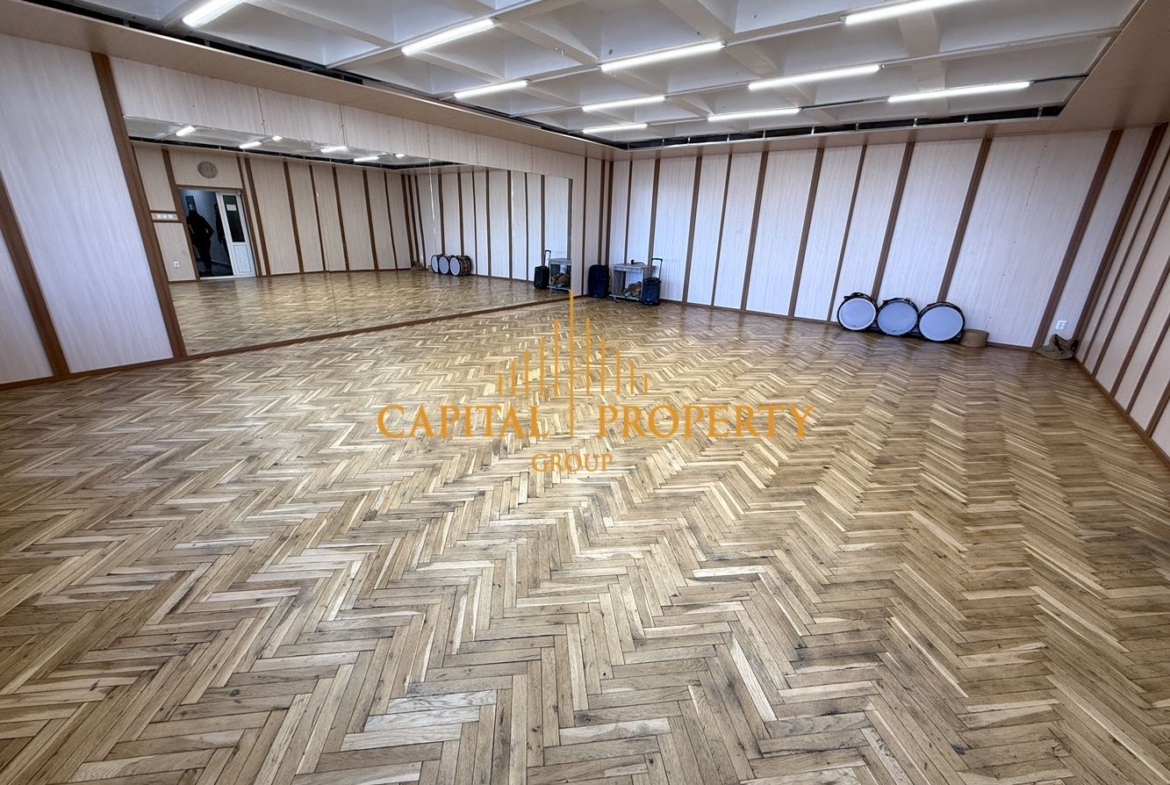 Имотът се намира на етаж 2, и представлява 4 помещения + санитарен възел с чиста застроена площ от 152м2. В момента се използва като зала за спорт и танци, като залата е със светла площ около 80 м2, обща съблекалня с площ около 25 м2, другите две помещения се използват в момента за складови цели и са с площ съответно от 10м2 и 15м2. При преустройство могат да бъдат обособени няколко малки офиса. Подовите настилки във всички помещения са естествен дървен паркет. Спортната зала е след основен ремонт - нова ПВЦ дограма, санирани външни стени с 10 см изолация, а отвътре всички стени са с 5 см изолация облечена с дървена ламперия. Отоплението е посредством електричество - колонен климатик марка GREE. Прекаран СОТ. Изложение - изток.