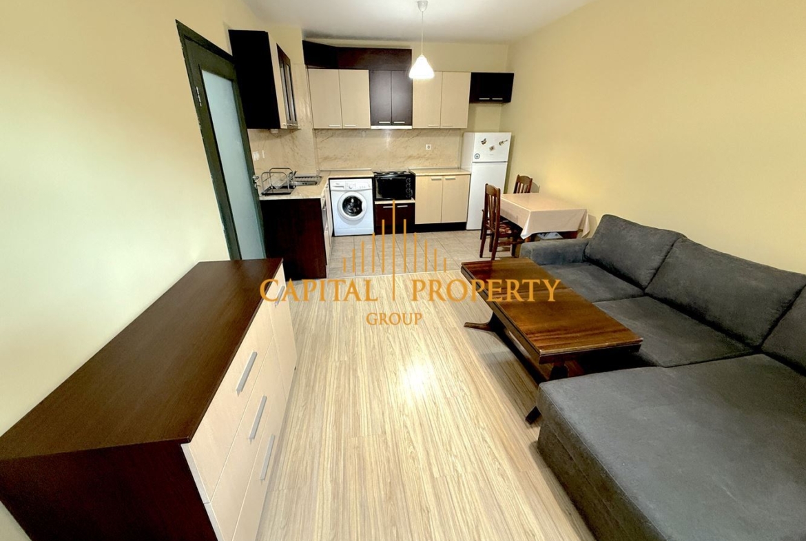 Разпределение на имота: просторна дневна с кухненски тракт, където има и разтегателен диван, спалня с голям трикрилен гардероб, остъклена тераса, баня с тоалет, коридор. Апартаментът е обзаведен и оборудван с печка с фурна и котлони, хладилник, пералня, аспиратор, климатик във всекидневната, бойлер в банята. Контролиран достъп до общите части! БЕЗ Домашни любимци!