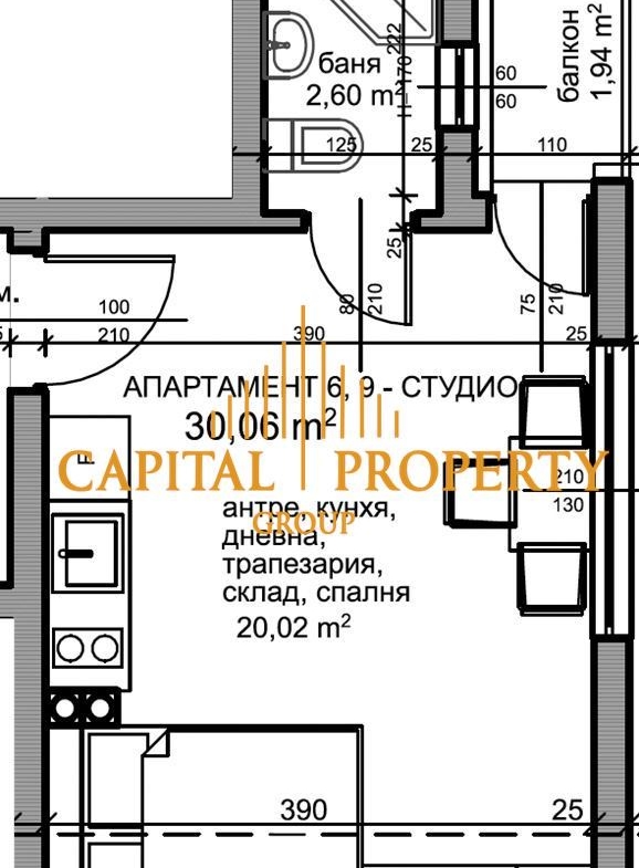 Capital Property Group Varna предлага едностаен апартамент състоящ се от дневна с тераса, комбиниран санитарен възел.